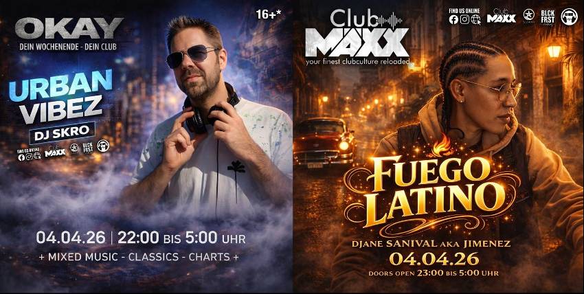 Am 04.04.2026 erwartet euch im OKAY Nightlife Donaueschingen eine Nacht voller Energie, Rhythmus und Partyfeeling!